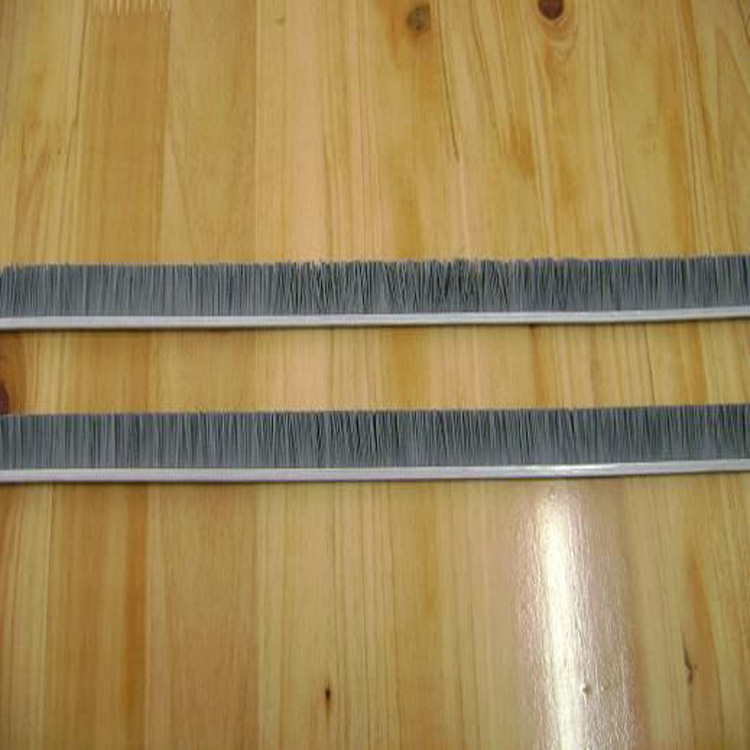 磨料絲條刷:采用鋼帶夾住磨料絲,中間用鐵絲壓住固定。刷毛緊固,不脫毛,鋼帶的厚度最小達2.5mm*2.5mm,最大14mm*14mm,單根長度不限。毛長按需定制。