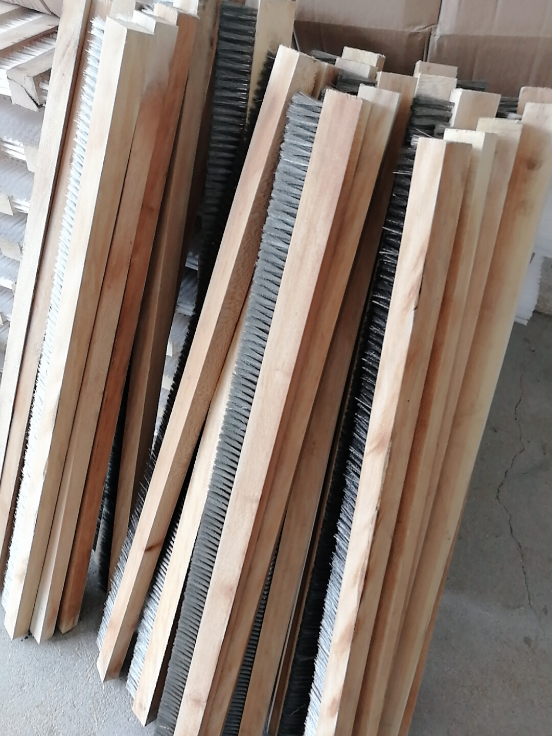 木條刷采用結實硬木,加工成所需要的方塊,再鉆孔植毛。可使用尼龍絲、鋼絲、不銹鋼絲、磨料絲、豬鬃、馬尾、劍麻等進行植毛。